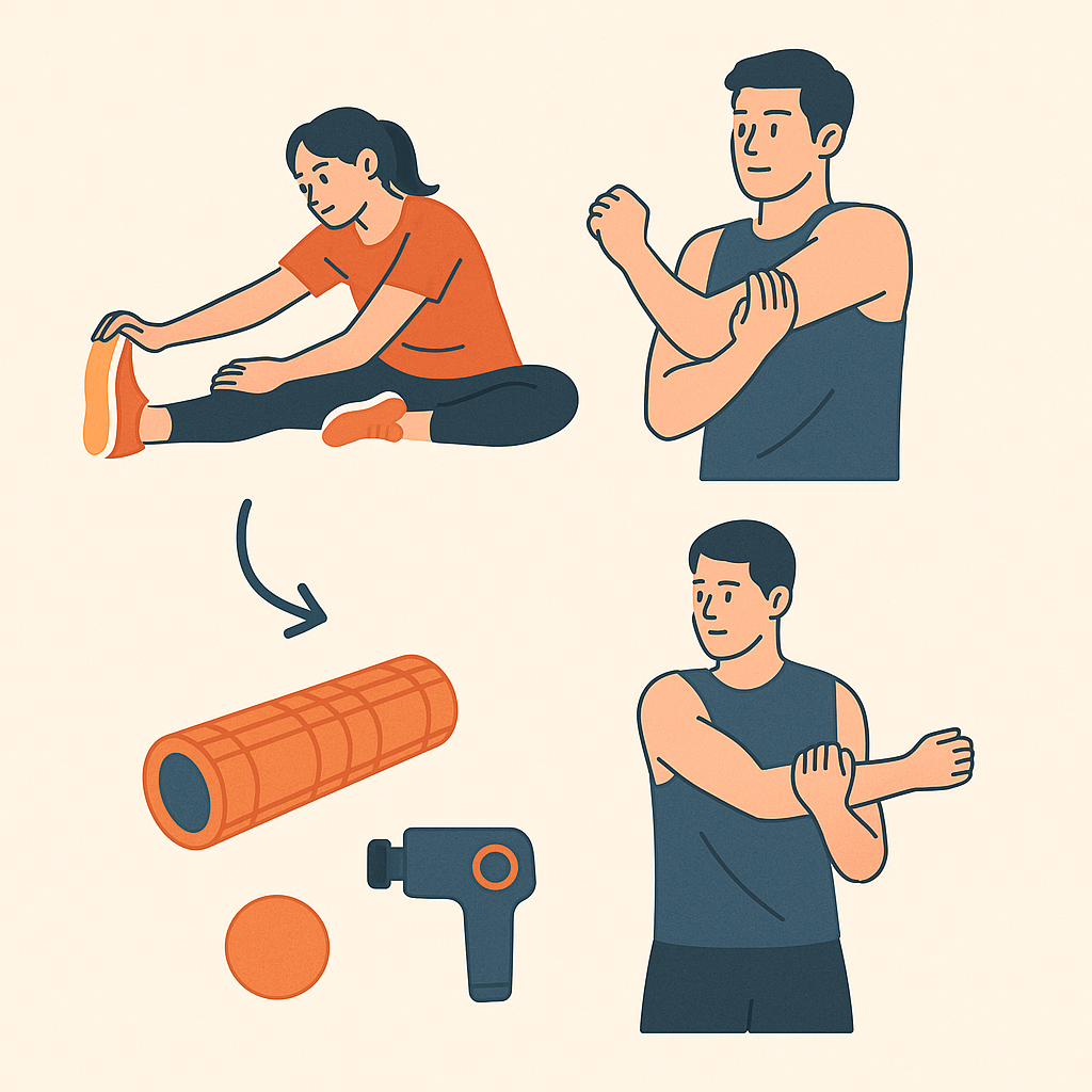 운동을 마친 후에 근육이 뻐근하고 움직일 때마다 통증이 느껴지는 경험은 누구나 겪어봤을 것이다. 근육통은 일시적인 것이지만, 이를 잘 관리하지 않으면 회복이 늦어지고 다음 운동에도 영향을 준다. 이때 중요한 것이 바로 운동 후 스트레칭과 근막 마사지 도구의 활용이다.