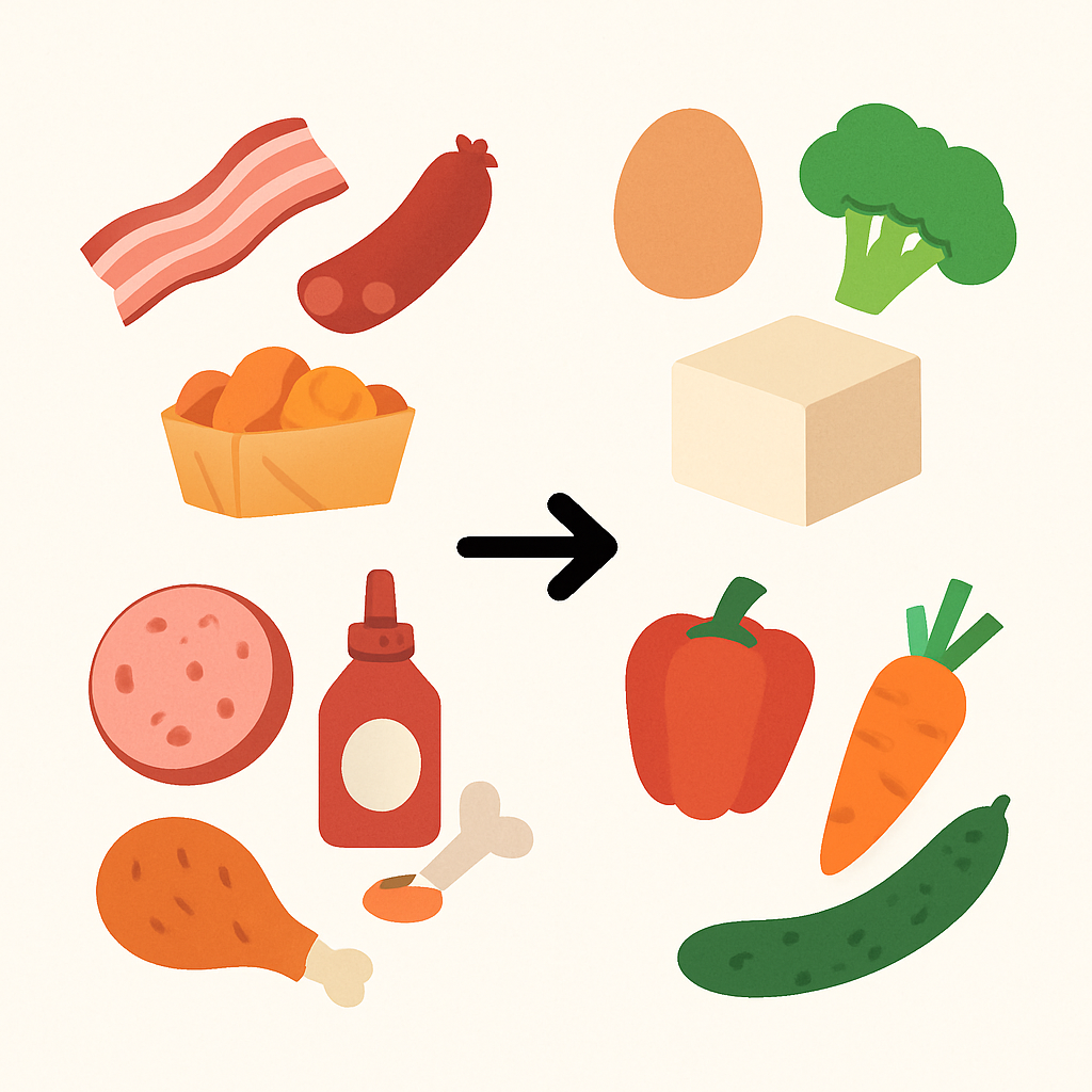 모든 가공식품을 완전히 배제하는 건 비현실적일 수 있다. 대신 식사의 70~80%를 자연식으로 구성하고, 가공된 조미료나 소스를 최소화하는 방향이 현실적이다. 스스로 조리하는 빈도가 늘어날수록 자연스럽게 가공식품은 줄어든다.