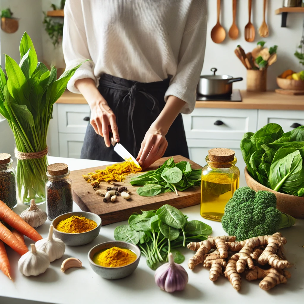 - 강황, 생강, 계피, 마늘 등은 항산화 작용이 뛰어나 염증을 줄이는 데 도움을 준다.