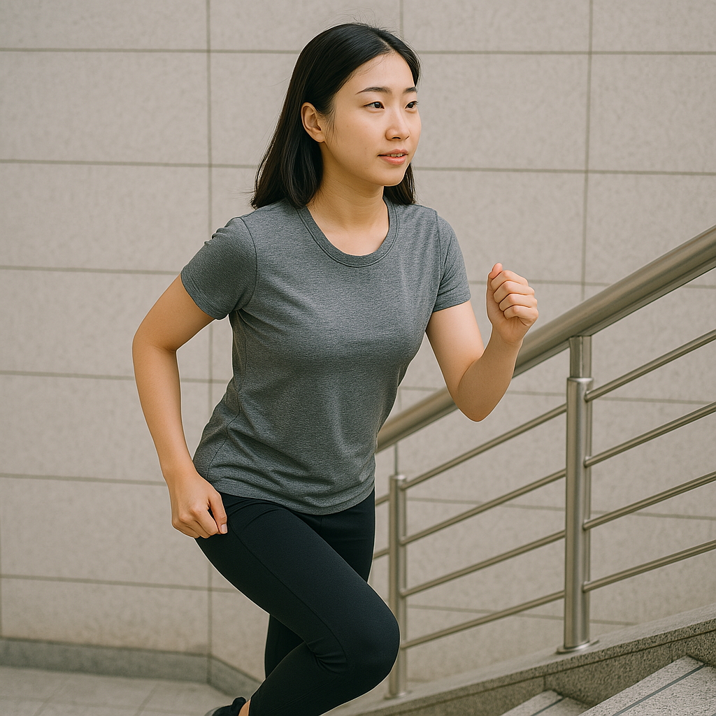 계단을 오를 때는 허벅지, 종아리, 엉덩이 근육이 동시에 사용됩니다.