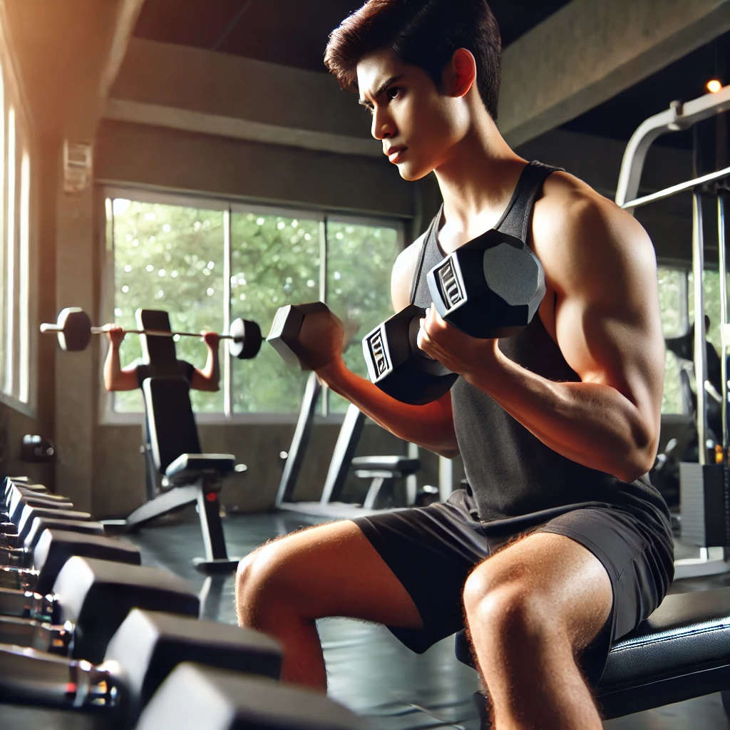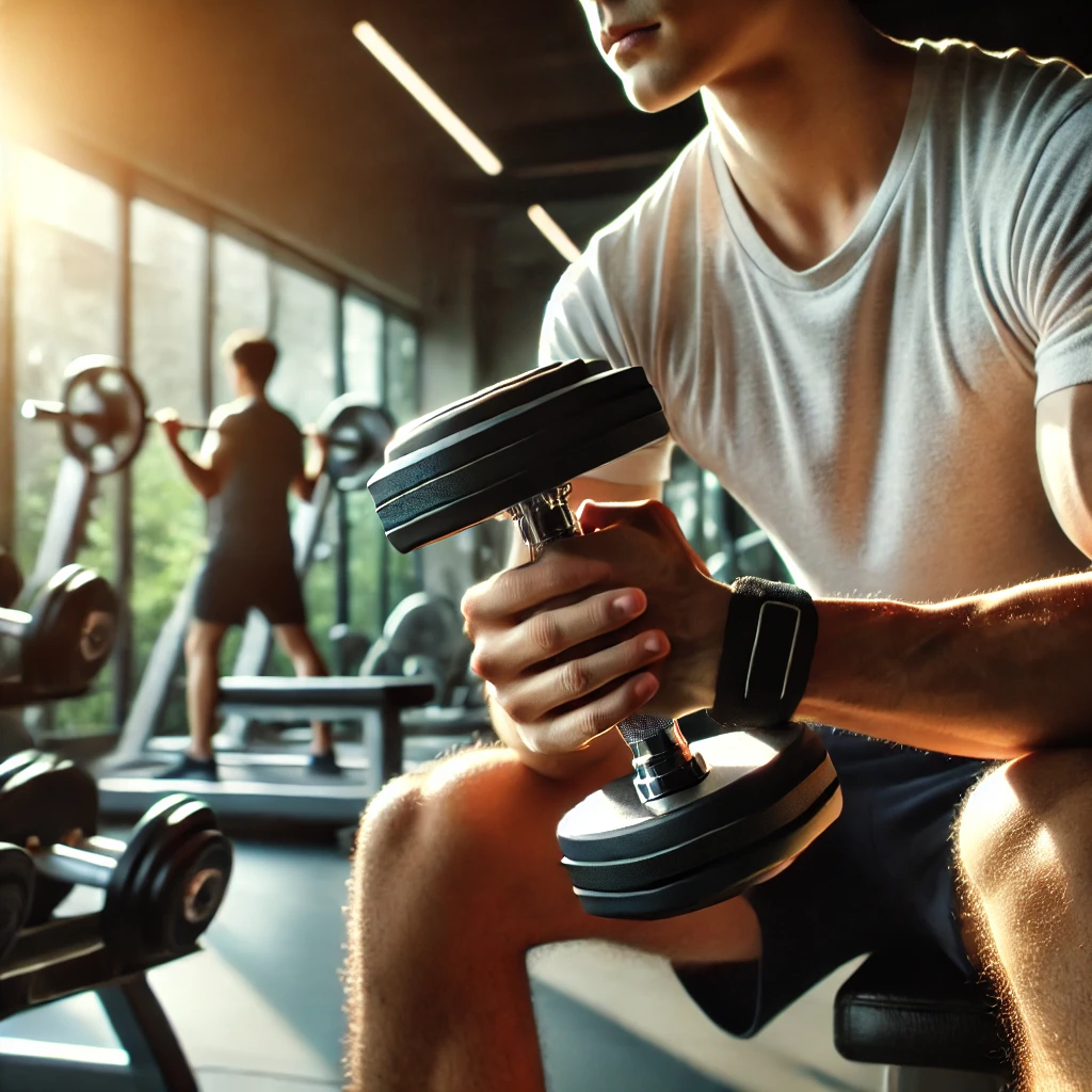 중간 이미지 1: 덤벨을 이용해 근력 운동을 하는 사람